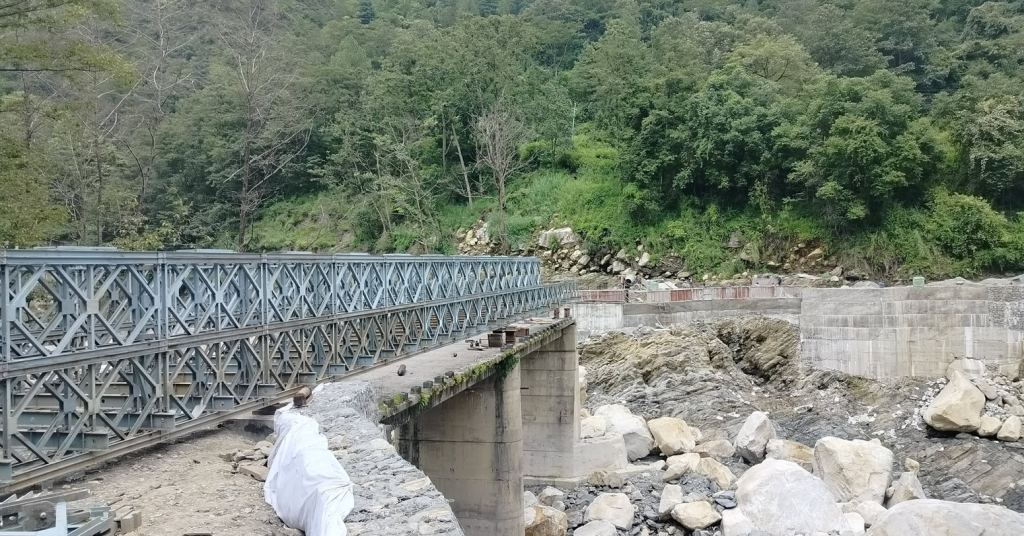 सिंहका अनुसार सिमखोलामा हालिनुपर्ने बेलिब्रिज ५७ मिटर लामो भएकाले भैँसे–भीमफेदी सडकखण्डअन्तर्गत घट्टेखोलाबाट १३ मिटर र मान्डु खोलाबाट ५० मिटर लामो गरी दुईवटा बेलिब्रिज झिकेर जडान कार्य भइरहेको छ । बेलिब्रिजसहित पक्की पहुँच मार्ग निर्माण र वरिपरि क्षतिग्रस्त सडक मर्मतका लागि गौरव इन्जिनियर्स प्रालिले एक करोड ७९ लाख रुपैयाँको ठेक्का पाएको हो ।