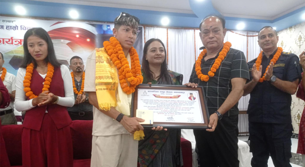 हेटाैँडा । फुटबल खेलको माध्यमबाट नेपाललाई विश्वभर चिनाउने नेपाली महिला राष्ट्रिय फुटबल टोलीकी कप्तान सावित्रा भण्डारी ‘साम्बा’ लाई हेटौँडामा सम्मान गरिएको छ ।