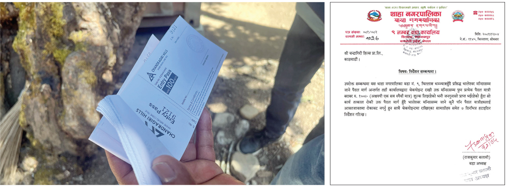 हेटौँडा । चन्द्रागिरि हिल्स प्रालिले थाहा नगरपालिका–९, चित्लाङ भन्ज्याङ हुँदै भालेश्वर मन्दिरसम्म जाने पैदलमार्गमा चेकपोइन्ट राखेर सर्वसाधारणसँग अनधिकृत रूपमा रकम लिएको पाइएपछि थाहा नगरपालिका–९ को कार्यालयले उक्त कार्य तत्काल रोक्न चन्द्रागिरि हिल्सलाई निर्देशन दिएको छ ।