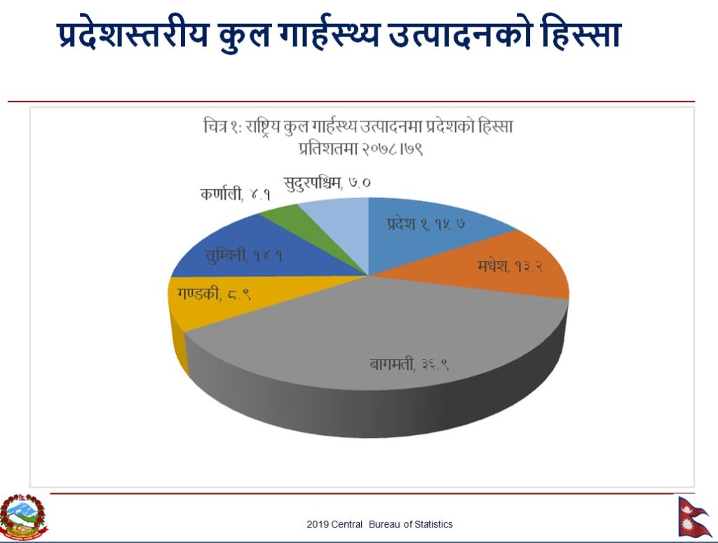 तर, अन्य प्रदेशमा भने कृषिको हिस्सा धेरै छ । बागमतीमा व्यापारको हिस्सा बढी हुनुमा शहरीकरण, बढ्दो जनसंख्या, राष्ट्रिय तहका ठूला कारोबार यतै हुनु मूख्य कारण रहेको विभागले जनाएको छ ।