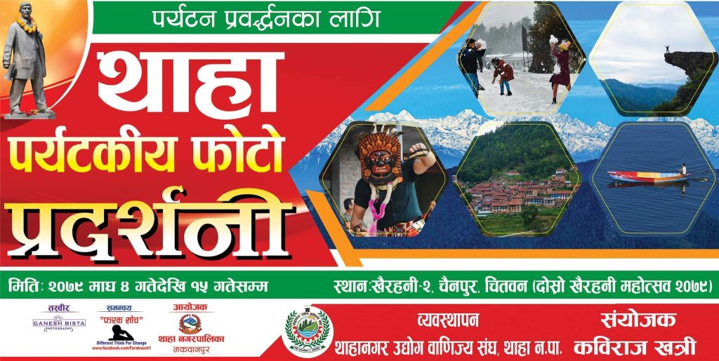 नेपाल उद्योग वाणिज्य महासंघ बागमती प्रदेश तथा खैरहनी उद्योग वाणिज्य संघको आयोजनामा चितवनको लदरी खोला किनारमा २०७९ माघ ४ देखि १५ सम्म चल्ने बागमती प्रादेशिक एवं दोश्रो खैरहनी महोत्सवमा थाहाको फोटो प्रदर्शनीका लागि राखिने भएको हो ।
