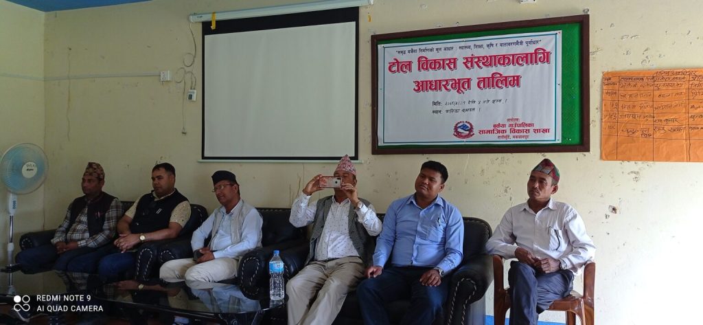 बकैयामा रहेका टोल बिकास संस्थाका ६० जनालाई टोल बिकास संस्थाको काम, कर्तव्य र अधिकार बारे जानकारी गराउन तालिमको आयोजना गरिएको हो ।