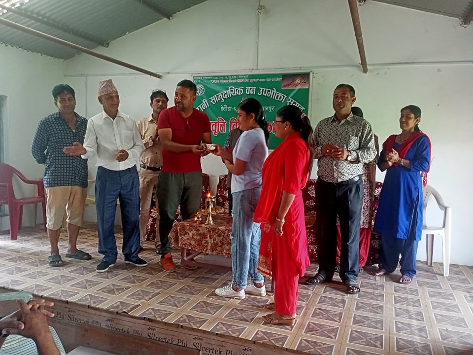 छात्रवृत्ति कार्यक्रमका प्रमुख अतिथि चौलागाई र वन समूहका अध्यक्ष न्यौपानेले संयुक्त रुपमा प्रदान गरेका थिए । वन उपभोक्ता समूहले विगत १५ वर्ष देखी आफ्नै स्रोत त साधनबाट वन उपभोक्ता समूहको क्षेत्रभित्र रहेका सामुदायिक विद्यालयमा अध्यययनरत जेहेन्दार,गरिब विद्यार्थीलाई छात्रवृती दिदै आएको छात्रवृत्ति संयोजक तथा वन समूहकी सचिव नानीमाया रुम्बाले बताईन ।