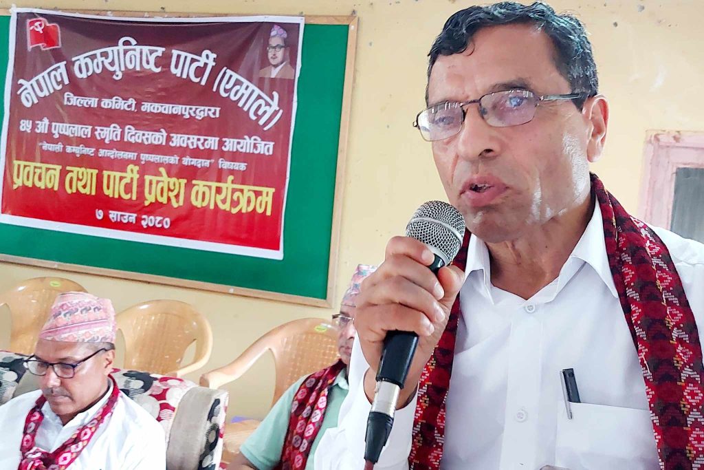 हेटौंडा । नेकपा एमालेका स्थायी कमिटीका सदस्य तथा, केन्द्रीय संगठन विभागका प्रमुख काशिनाथ अधिकारीले नेपाली राजनीतिमा निर्णायक तथा आदर्श पार्टी निर्माण गर्ने अभियानमा रहेको बताएका छन् । नेकपा एमाले, मकवानपुरद्वारा आयोजित ४५ औ पुष्पलाल स्मृति दिवसको अवसरमा आयोजित प्रवचन कार्यक्रममा बोल्दै नेता अधिकारीले नेकपा एमाले बलियो हुनु कम्युनिष्ट आन्दोलनलाई मात्र होईन मुलुककै आवश्यकता भएको बताए ।