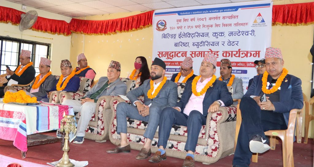 शुक्रबार आयोजित एक कार्यक्रमबीच बागमती प्रदेशका युवा तथा खेलकुदमन्त्री मीनकृष्ण महर्जनले तालिम उद्घाटन गरेका थिए । मन्त्री महर्जनले युवाहरूलाई सीप प्रदान गरी गाउँ, समाज हुँदै देशकै आर्थिक रूपान्तरणमा योगदान पुर्याउन सकिने बताए ।
