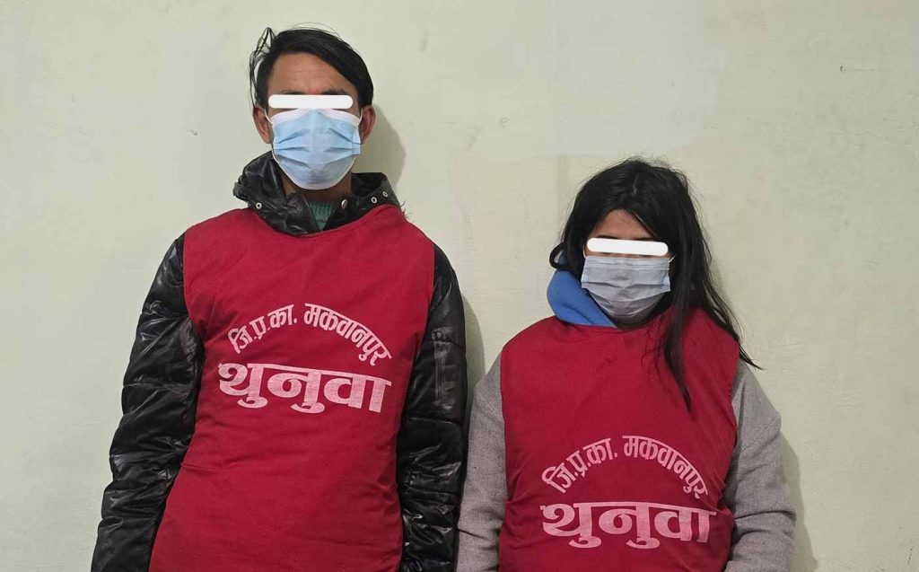 हेटाैँडा । मकवानपुर प्रहरीले अवैध लागुऔषध नाइट्राभेट एक हजार १८९ ट्याब्लेटसहित २ जनालाई पक्राउ गरेको छ। पक्राउ पर्नेमा भक्तपुरको चाँगुनारायण नगरपालिका– ८ बस्ने २६ वर्षका प्रेमप्रसाद दाहाल र २२ वर्षकी निकिता पुडासैनी रहेका छन्।