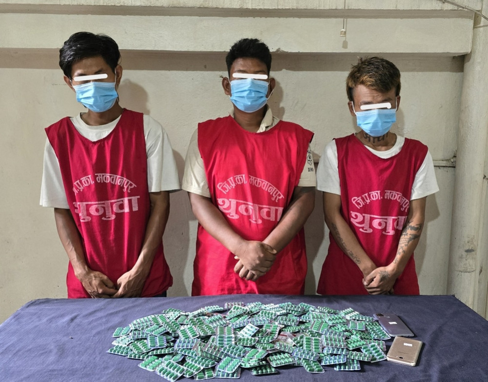 प्रहरीले हेटाैँडा औद्योगिक क्षेत्रको पानीट्यांकी नजिकबाट ट्रामाडोल १७७० क्याप्सुलसहित हेटौंडा उपमहानगरपालिका—१५ शिखरपानीका २४ वर्षीय महेश तामाङ, भिमफेदी गाउँपालिका घर भई हाल हेटौंडा—९ मा डेरा लिएर बस्ने २६ वर्षीय कैलाश थापा मगर र हेटौंडा— १३ का ४० वर्षीय सोम स्याङ्तानलाई पक्राउ गरेको हो ।