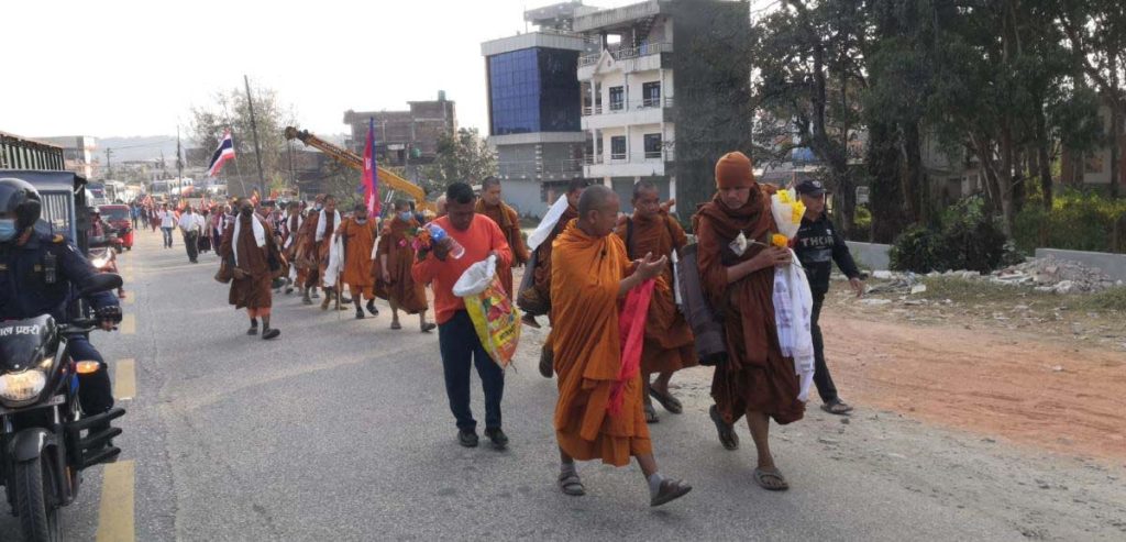 थाइल्यान्डको वाट थाम्पाइ विहारका प्रमुख भिक्षु आचान सुफित रम्क्षीत धम्मोको नेतृत्वमा रहेको सो टोली बुद्ध जन्मस्थल लुम्बिनीसम्मको पैदल यात्रामा रहेको छ । पदयात्रामा थाइल्यान्डका १५, भारतका चार, नेपालका तीन र लाओसका एक जना बौद्ध भिक्षु सहभागी छन्। यस्तै स्वयंसेवकका रूपमा थाइल्यान्डका दुई, भारतका तीन र नेपालका एक गरी छ जना रहेकाे अखिल नेपाल भिक्षु महासङ्घका केन्द्रीय सदस्य भिक्षु मेधङ्कर स्थविरले जानकारी दिए । उनका अनुसार टोलीले दैनिक २५ देखि ३० किलोमिटर पैदल यात्रा गर्दै आएको छ ।